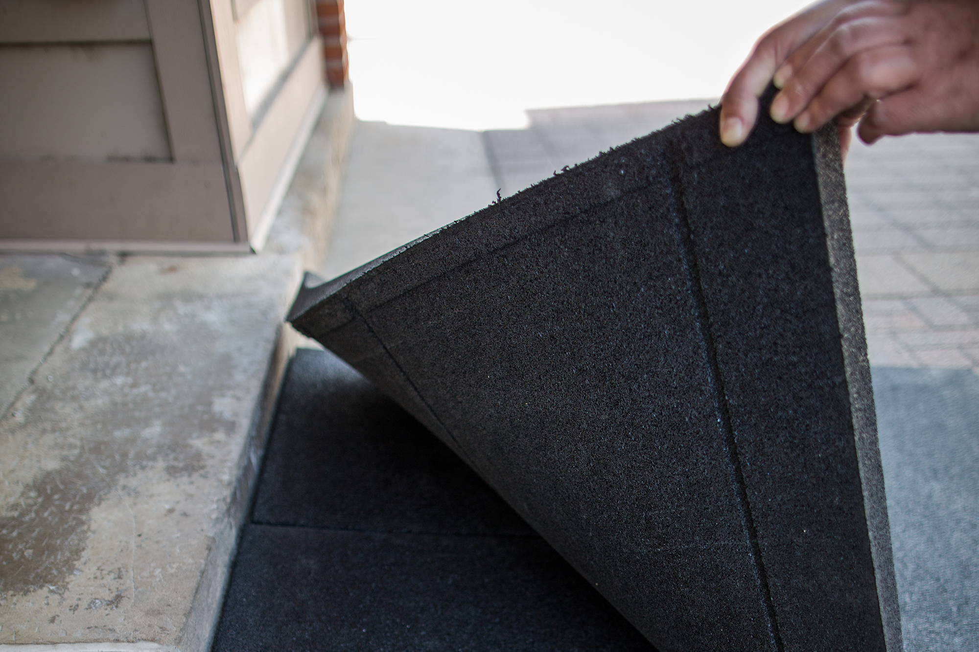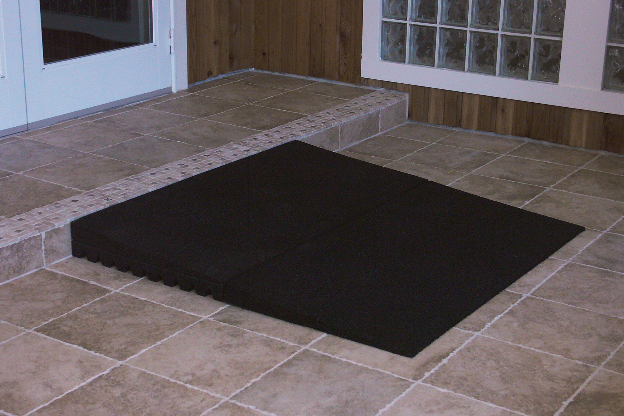 Transitions Angled Entry Mat does not interfere with door tracks and works well with sliding doors!